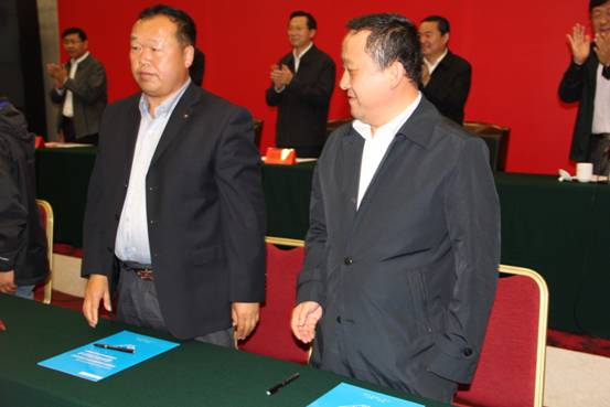 內蒙古米真羊絨紡織有限責任公司與柴達木羊絨有限公司簽署協(xié)議現(xiàn)場