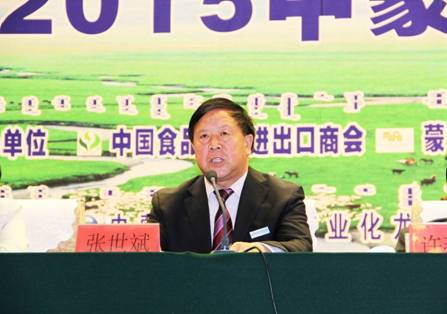 內(nèi)蒙古農(nóng)牧業(yè)產(chǎn)業(yè)化龍頭企業(yè)協(xié)會(huì)會(huì)長(zhǎng)張世斌在會(huì)上講話