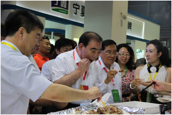 參會領(lǐng)導巡展并品嘗參展羊肉