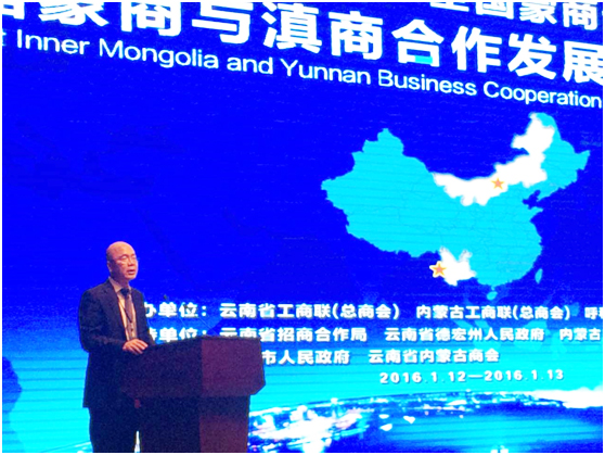 112日下午,由云南省工商聯(總商會)、內蒙古自治區(qū)工商聯(總商會)、內蒙古自治區(qū)呼和浩特市工商聯(總商會)主辦,云南省招商合作局、云南省德宏州人民政府、內蒙古自治區(qū)農牧業(yè)廳支持,內蒙古農牧業(yè)產業(yè)化龍頭企業(yè)協會聯合主辦,瑞麗市人民政府和云南省內蒙古商會共同承辦的首屆“一帶一路”全國蒙商云南行——蒙商與滇商合作發(fā)展(瑞麗)論壇在德宏州瑞麗市隆重舉行。
