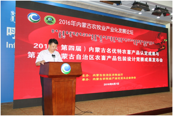 農(nóng)牧業(yè)廳副廳長云挨厚在成果發(fā)布會致辭中對農(nóng)牧業(yè)產(chǎn)業(yè)化論壇的舉辦表示充分肯定,也對新一屆獲得“名優(yōu)特”產(chǎn)品認證和包裝設(shè)計大賽獲獎企業(yè)表示熱烈祝賀,云廳長強調(diào)這些獲獎企業(yè)與產(chǎn)品是同類中的佼佼者,潛力發(fā)展巨大,農(nóng)牧業(yè)廳也將加大推進力度,整合優(yōu)質(zhì)農(nóng)畜產(chǎn)品。與此同時,云廳長也提出了三點希望:一是要注重食品安全責任意識。企業(yè)在發(fā)展過程中要將食品安全作為頭等大事,尤其是獲得協(xié)會名優(yōu)特產(chǎn)品認定與農(nóng)畜產(chǎn)品包裝設(shè)計競賽的企業(yè),更要發(fā)揮好帶頭示范作用。二是要打造品牌,補齊我區(qū)農(nóng)畜產(chǎn)品發(fā)展短板。企業(yè)要具有品牌發(fā)展意識,并通過培育發(fā)展,科技支持來研發(fā)引領(lǐng)產(chǎn)品,用行動踐行品牌意識。三是要加快推進自治區(qū)農(nóng)畜產(chǎn)品輸出工程步伐。企業(yè)要充分利用北京、上海、廣州等內(nèi)蒙古精品館與大型網(wǎng)絡(luò)電商,通過線上線下發(fā)展模式,拓寬宣傳銷售渠道。協(xié)會要充分發(fā)揮自身優(yōu)勢,抓好內(nèi)蒙古精品館的監(jiān)督與運營工作,共同助力我區(qū)農(nóng)畜產(chǎn)品走出內(nèi)蒙古,走向全國,乃至全世界。