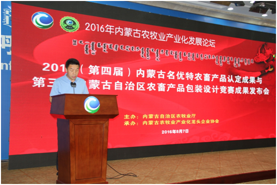 8月7日上午,第四屆內(nèi)蒙古“名優(yōu)特”農(nóng)畜產(chǎn)品認定及第三屆內(nèi)蒙古自治區(qū)包裝設(shè)計競賽成果發(fā)布會及內(nèi)蒙古農(nóng)牧業(yè)產(chǎn)業(yè)化論壇在內(nèi)蒙古國際會展中心盛大開幕。內(nèi)蒙古自治區(qū)農(nóng)牧業(yè)廳廳長郭健、副廳長云挨厚、產(chǎn)業(yè)化處處長侯雁冰、辦公室副主任黃偉,中國農(nóng)業(yè)產(chǎn)業(yè)化龍頭企業(yè)協(xié)會綜合部副主任程篤學(xué)、內(nèi)蒙古農(nóng)牧業(yè)產(chǎn)業(yè)化龍頭企業(yè)協(xié)會會長閆樹春,內(nèi)蒙古農(nóng)牧業(yè)產(chǎn)業(yè)化龍頭企業(yè)協(xié)會執(zhí)行會長兼秘書長林永亮,各盟市農(nóng)牧業(yè)局(產(chǎn)業(yè)化辦公室)負責人,精品館負責人,內(nèi)蒙古農(nóng)牧業(yè)產(chǎn)業(yè)化龍頭企業(yè)負責人,各參展企業(yè)負責人及包裝名優(yōu)特獲獎企業(yè)負責人,協(xié)會辦事處負責人、會員單位等200余人出席會議,自治區(qū)農(nóng)牧業(yè)廳產(chǎn)業(yè)化處處長侯雁冰主持會議。本次會議特別邀請到中國農(nóng)業(yè)科學(xué)院農(nóng)產(chǎn)品加工研究所所長、黨委副書記戴小楓做主旨演講。