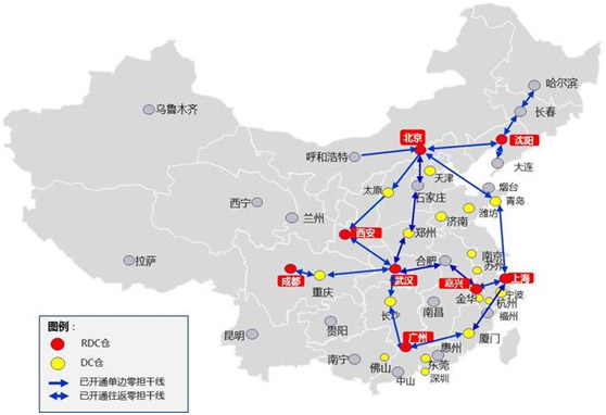 內(nèi)蒙古是我國最大的牛羊肉產(chǎn)地,其主產(chǎn)區(qū)集中在內(nèi)蒙古東部。內(nèi)蒙古地區(qū)東西跨度非常長,直線距離高達2305KM,跨盟市運輸距離往往也超過500KM,如果跨盟市進行中轉(zhuǎn)集散,將會產(chǎn)生高昂的干線運輸費用,而長距離的運輸也會導(dǎo)致整體運輸時效的降低。同時,牛羊肉對冷鏈運輸具有極強的依賴性,必須進行冷凍、冷藏。根據(jù)這個特點,順豐推出了針對內(nèi)蒙古牛羊肉冷鏈運輸?shù)慕鉀Q方案,順豐冷鏈運輸網(wǎng)絡(luò)圍繞牛羊肉主生產(chǎn)區(qū),再進入全國冷鏈運輸網(wǎng)。針對內(nèi)蒙古牛羊肉主生產(chǎn)區(qū)位于東部,順豐在干線網(wǎng)絡(luò)圍繞內(nèi)蒙古東部開展,干線開設(shè)就近轉(zhuǎn)接目前已開通的冷鏈運輸網(wǎng)絡(luò)節(jié)點,可避免直發(fā)成本高的問題并提升現(xiàn)有干線裝卸率。