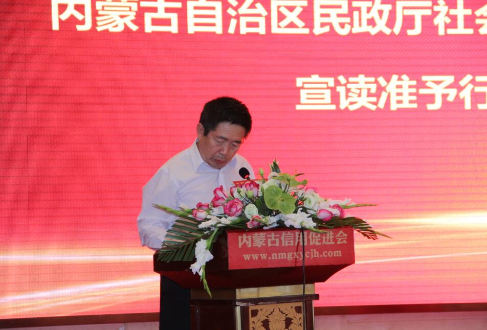 內(nèi)蒙古自治區(qū)民政廳社會組織管理局局長韓少俊宣讀準(zhǔn)予行政許可決定書