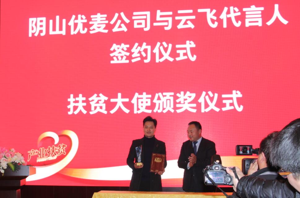 會(huì)上,陰山優(yōu)麥與云飛簽訂品牌代言協(xié)議,并由劉超旗長(zhǎng)為云飛頒發(fā)“扶貧大使”證書和獎(jiǎng)杯,并希望他發(fā)揮號(hào)召作用,繼續(xù)助推地方特色產(chǎn)品,提升市場(chǎng)認(rèn)知度。云飛在發(fā)言中講到,內(nèi)蒙古的農(nóng)畜產(chǎn)品,尤其像陰山優(yōu)麥這種地方特色產(chǎn)品深受社會(huì)各界的喜愛。同時(shí)表示,作為公司的代言人,日后定會(huì)為產(chǎn)品的宣傳推廣作出積極的努力。