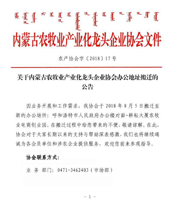 01  內(nèi)蒙古農(nóng)牧業(yè)產(chǎn)業(yè)化龍頭企業(yè)協(xié)會(huì)...