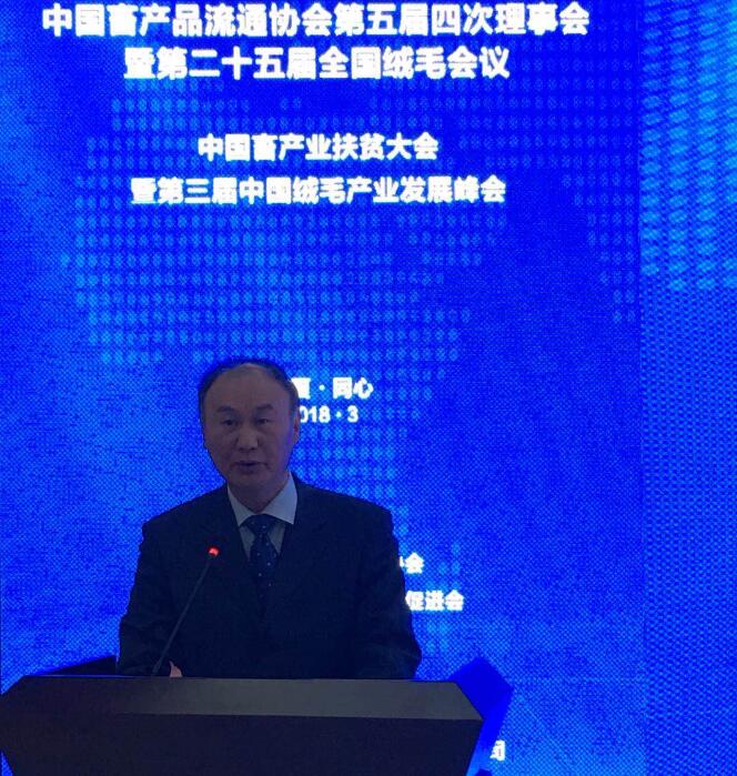 中華全國供銷合作總社社團管理部部長孔培聰在致辭中講到,2017年全國羊絨產(chǎn)量1.9萬噸,占世界總產(chǎn)量的70%左右,原料生產(chǎn)和加工量在90%以上,出口到40多個國家和地區(qū)。羊毛年產(chǎn)量1.5萬噸,在國際貿(mào)易中占90%以上,其它絨毛也穩(wěn)步發(fā)展。絨毛產(chǎn)業(yè)已成為部分地區(qū)鄉(xiāng)村振興的支柱產(chǎn)業(yè),也是助農(nóng)增收的特色產(chǎn)業(yè),長期以來得到了政府的重視和支持,2018年是貫徹黨的十九大精神的開局之年,在這關(guān)鍵時期,會議的召開必將推動絨毛產(chǎn)業(yè)深化供給側(cè)改革,進一步提升產(chǎn)業(yè)發(fā)展動力和前景。