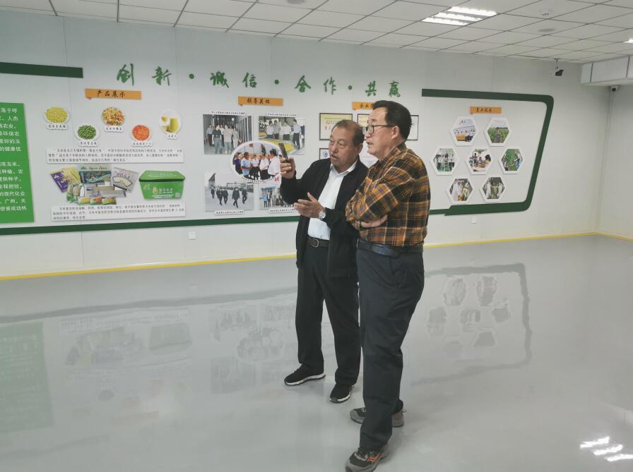 浩峰農(nóng)業(yè)公司高級(jí)顧問(wèn)王補(bǔ)在向林永亮執(zhí)行會(huì)長(zhǎng)介紹企業(yè)