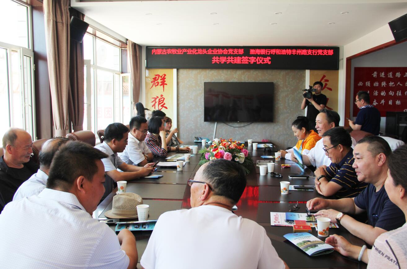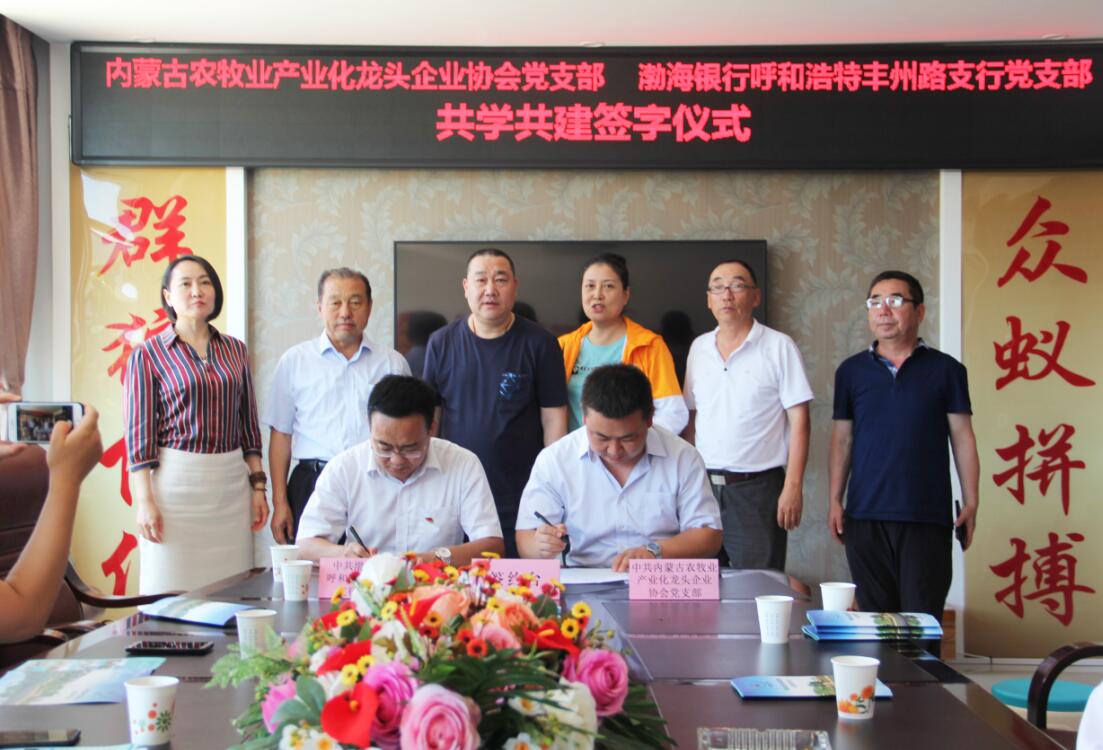 活動過程中,為創(chuàng)造性地推進(jìn)黨組織“共學(xué)共建”結(jié)對工作,圍繞新時代黨的建設(shè)總要求,內(nèi)蒙古農(nóng)牧業(yè)產(chǎn)業(yè)化龍頭企業(yè)協(xié)會黨支部和渤海銀行呼和浩特豐州路支行黨支部簽訂了《共學(xué)共建結(jié)對協(xié)議》。通過結(jié)對共建,在弘揚社會正能量、加強(qiáng)愛國主義教育等方面樹立新典型,力爭在構(gòu)建銀企合作關(guān)系等方面取得新突破。