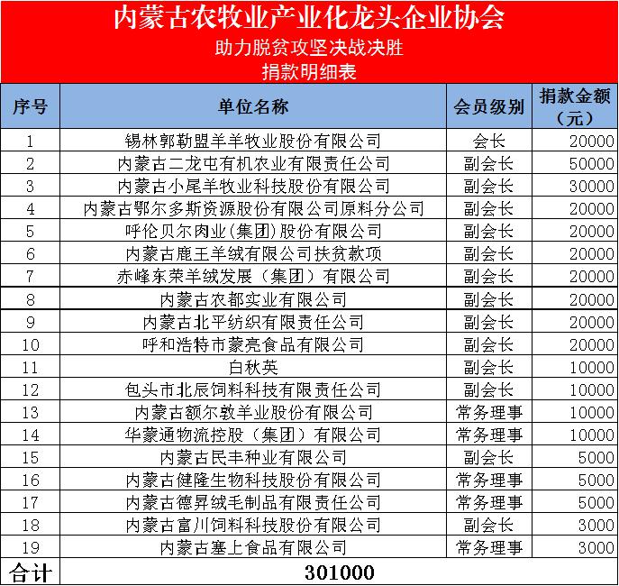 內(nèi)蒙古農(nóng)牧業(yè)產(chǎn)業(yè)化龍頭企業(yè)協(xié)會(huì),作為自治區(qū)各級(jí)產(chǎn)業(yè)化重點(diǎn)龍頭企業(yè)的聯(lián)合體,始終堅(jiān)持以習(xí)近平總書記“三農(nóng)”思想為根本遵循,圍繞協(xié)會(huì)“溝通、服務(wù)、自律、發(fā)展”的工作宗旨,發(fā)揮協(xié)會(huì)的橋梁和紐帶作用,堅(jiān)持為企業(yè)服務(wù)、為行業(yè)服務(wù)、為政府服務(wù)、為農(nóng)牧民服務(wù)。協(xié)會(huì)在自治區(qū)農(nóng)牧廳的指導(dǎo)下,將繼續(xù)堅(jiān)持投身助力內(nèi)蒙古脫貧攻堅(jiān)工作中,貢獻(xiàn)自己的力量。