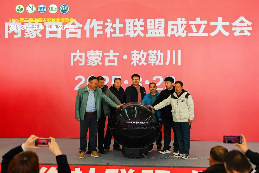來自內(nèi)蒙古7個(gè)旗縣的優(yōu)秀合作社代表共同按下啟動(dòng)裝置,宣告聯(lián)盟正式成立