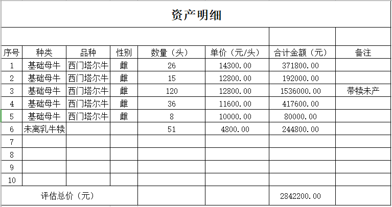 2)本次轉(zhuǎn)讓的標的中包含:體質(zhì)稍壯帶有未離乳牛犢的基礎(chǔ)母牛有26頭、體質(zhì)稍弱帶有未離乳牛犢的基礎(chǔ)母牛有25頭、帶犢未產(chǎn)的基礎(chǔ)母牛有110頭、體質(zhì)稍壯未孕未帶犢基礎(chǔ)母牛有36頭、體質(zhì)稍弱未孕未帶犢基礎(chǔ)母牛有8頭、未離乳牛犢51頭(為前述26+25頭基礎(chǔ)母牛所生)。
