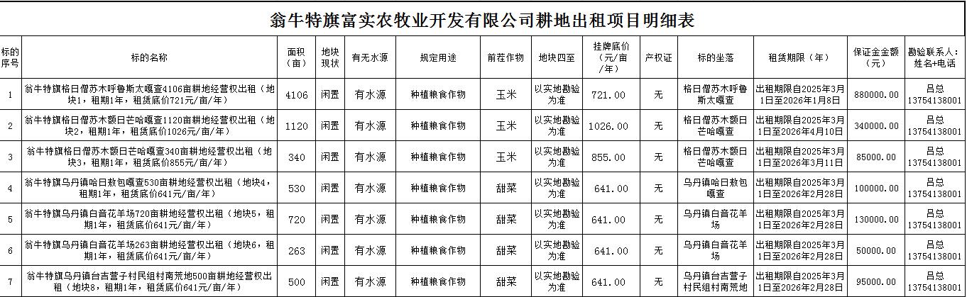 翁牛特旗富實(shí)農(nóng)牧業(yè)開發(fā)有限公司約7579畝耕地經(jīng)營權(quán)出租