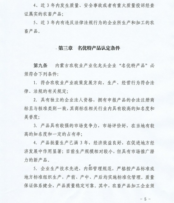 關(guān)于印發(fā)《內(nèi)蒙古農(nóng)牧業(yè)產(chǎn)業(yè)化龍頭企業(yè)名優(yōu)特產(chǎn)品認(rèn)定辦法》的通知