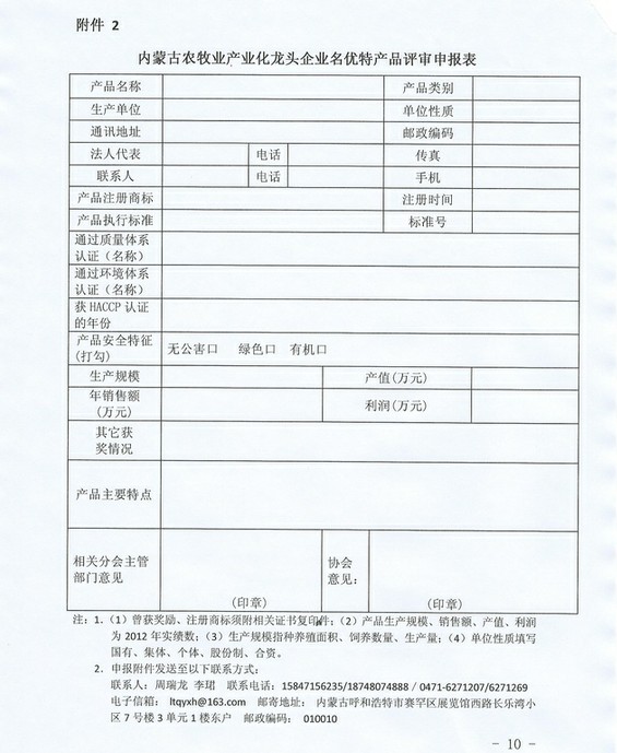 附件2:內(nèi)蒙古農(nóng)牧業(yè)產(chǎn)業(yè)化龍頭企業(yè)名優(yōu)特產(chǎn)品評(píng)審申報(bào)表.doc