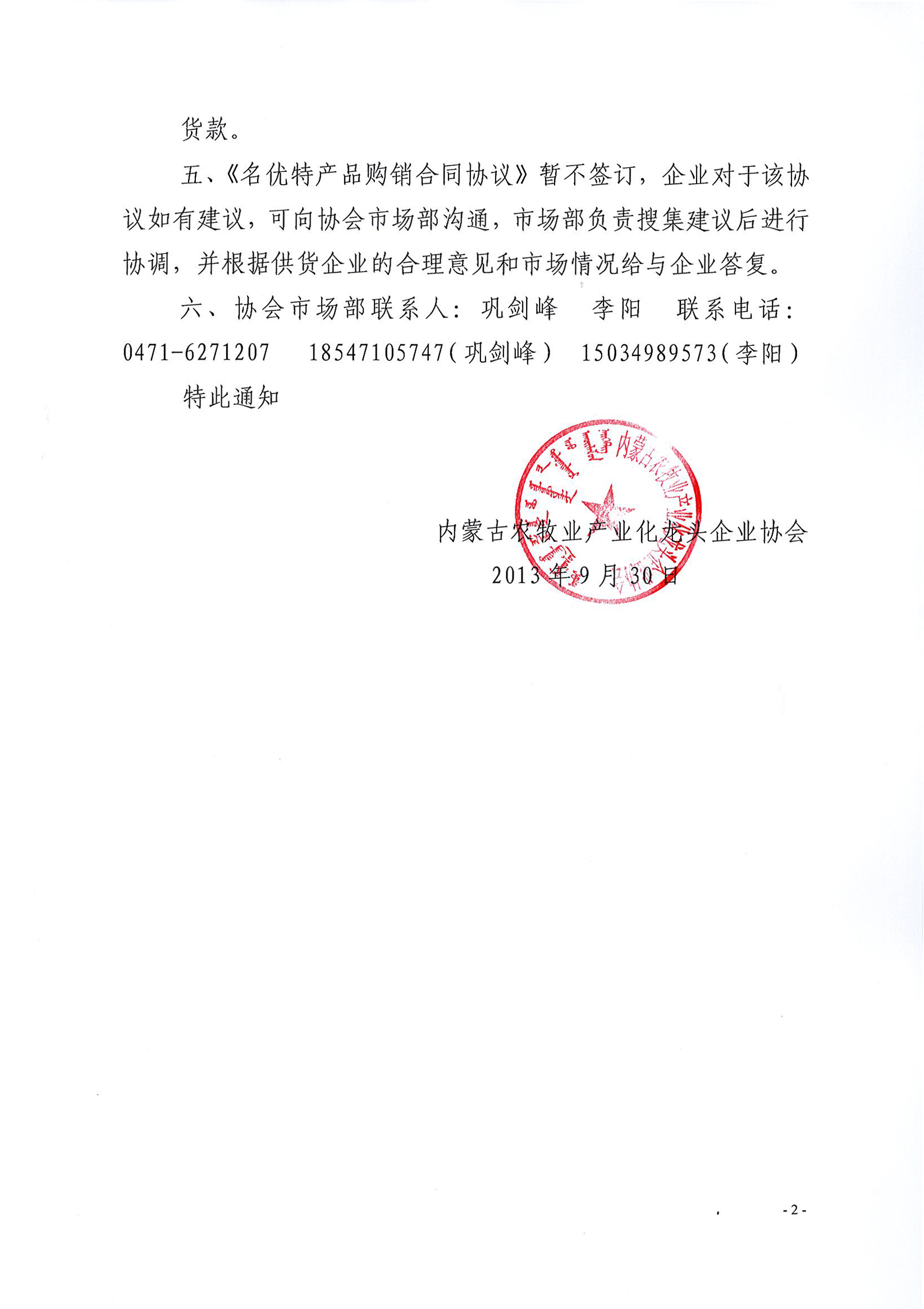 關(guān)于內(nèi)蒙古農(nóng)牧業(yè)產(chǎn)業(yè)化龍頭企業(yè)名優(yōu)特產(chǎn)品在專賣店展銷的補充通知