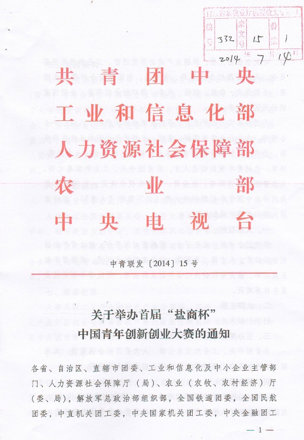 關(guān)于轉(zhuǎn)發(fā)《舉辦首屆“鹽商杯”中國青年創(chuàng)業(yè)大賽的通知》的通知