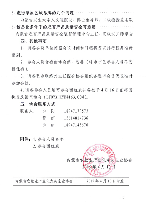 關(guān)于召開內(nèi)蒙古農(nóng)牧業(yè)產(chǎn)業(yè)化龍頭企業(yè)協(xié)會第一屆第三次理事會暨會員代表大會的通知