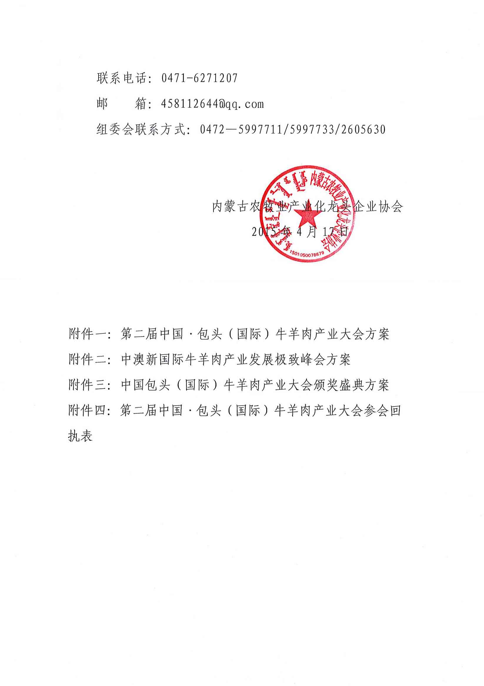 第二屆中國·包頭(國際)牛羊肉產(chǎn)業(yè)大會參會回執(zhí)表