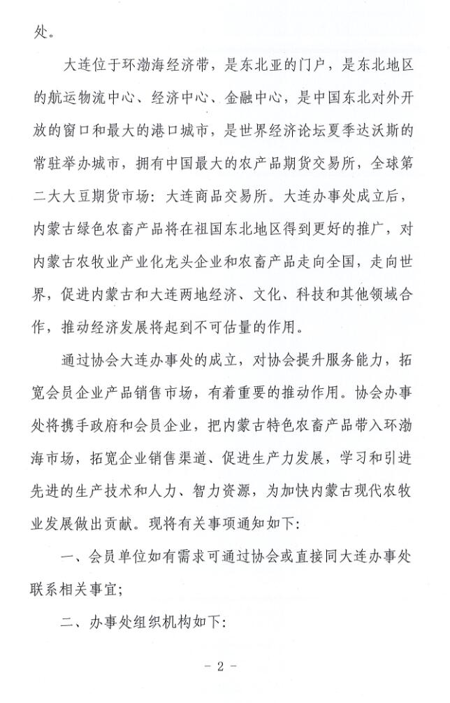 關(guān)于成立內(nèi)蒙古農(nóng)牧業(yè)產(chǎn)業(yè)化龍頭企業(yè)協(xié)會(huì)大連辦事處的通知