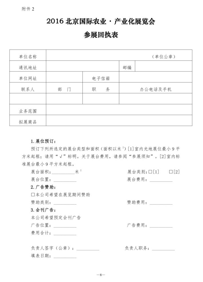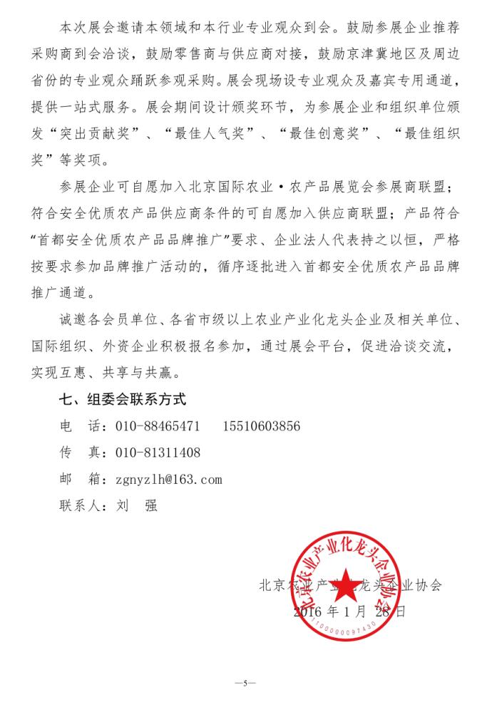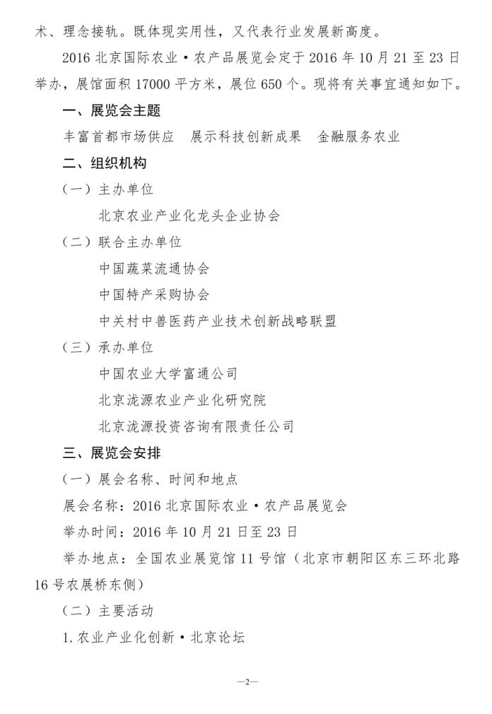 關于舉辦“2016北京國際農業(yè)·農產品展覽會”的通知