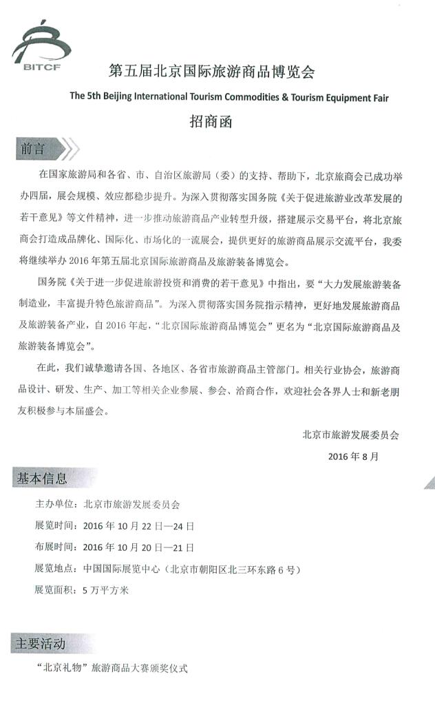關于邀請參加第五屆北京國際旅游商品博覽會的通知