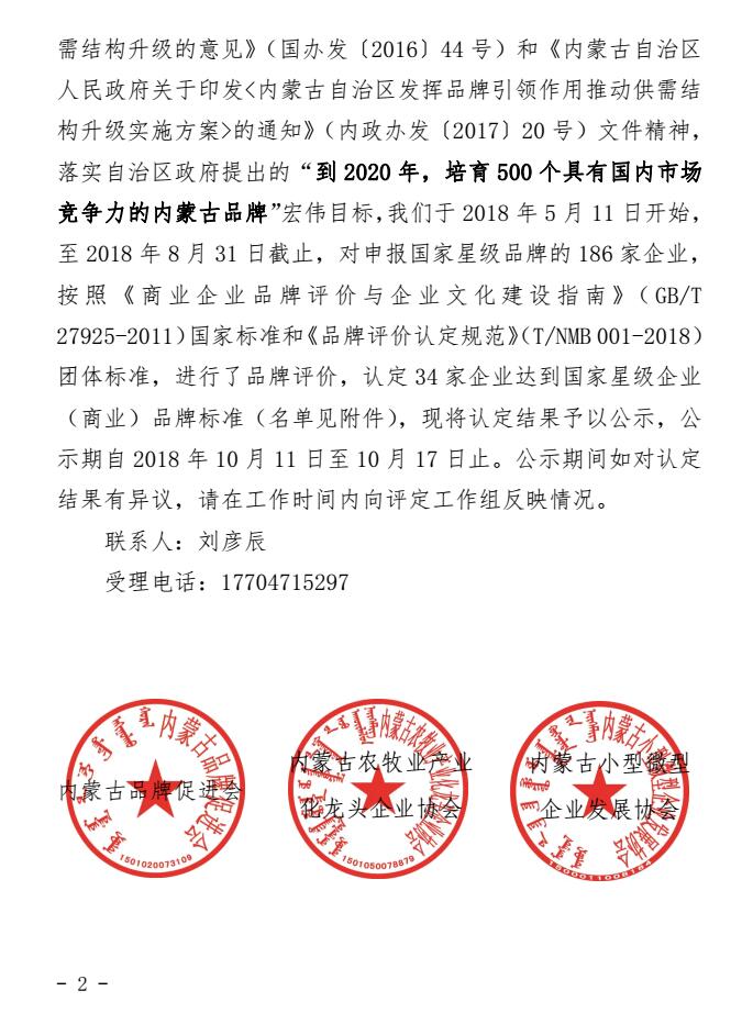 關(guān)于2018年度第一批內(nèi)蒙古商業(yè)企業(yè)品牌評價結(jié)果的公示