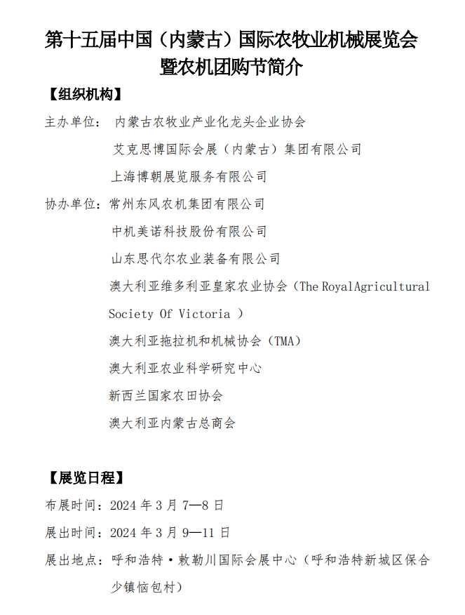 關(guān)于召開“2024年第十五屆中國(內(nèi)蒙古)國際農(nóng)牧業(yè)機械展覽會”通知
