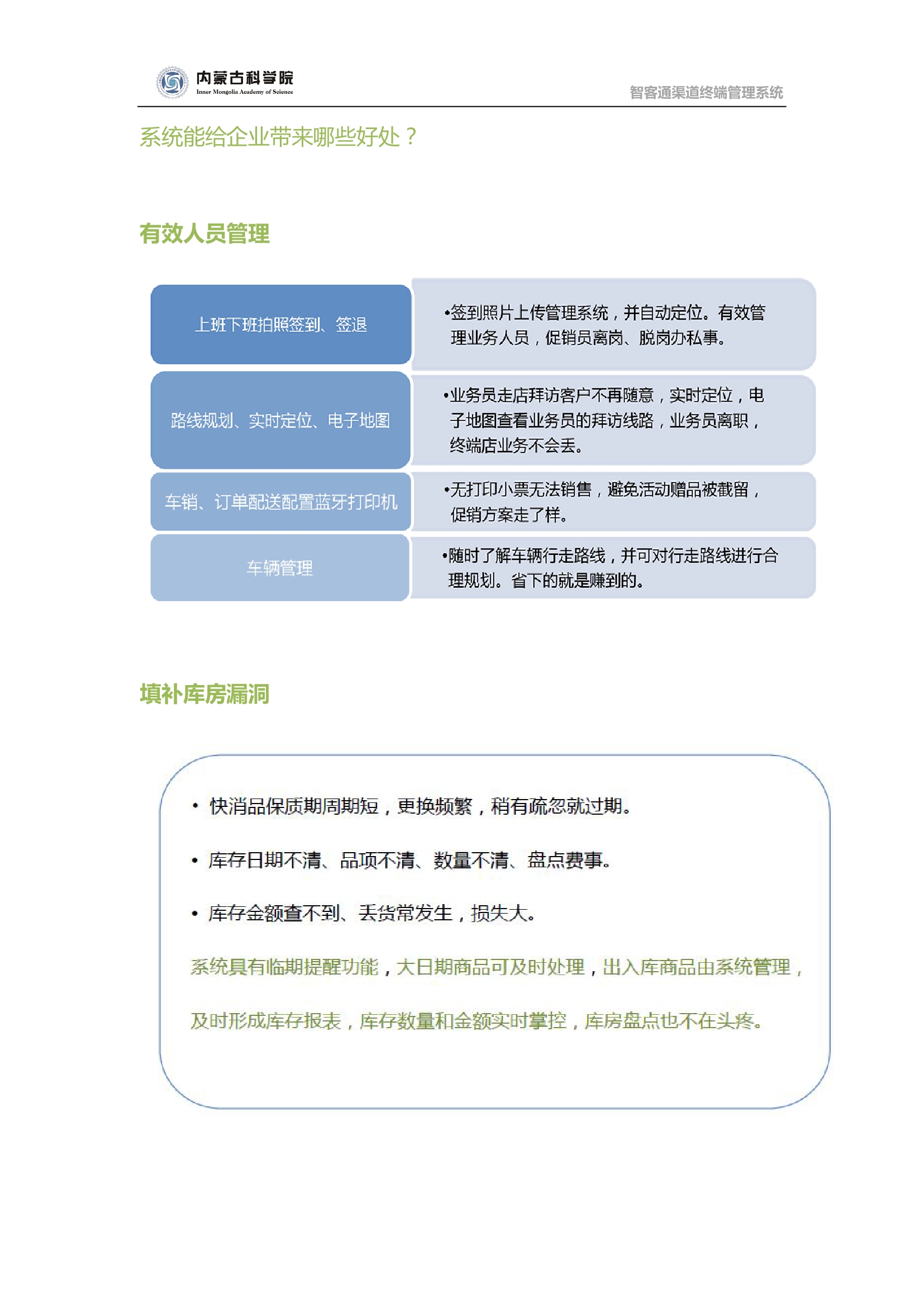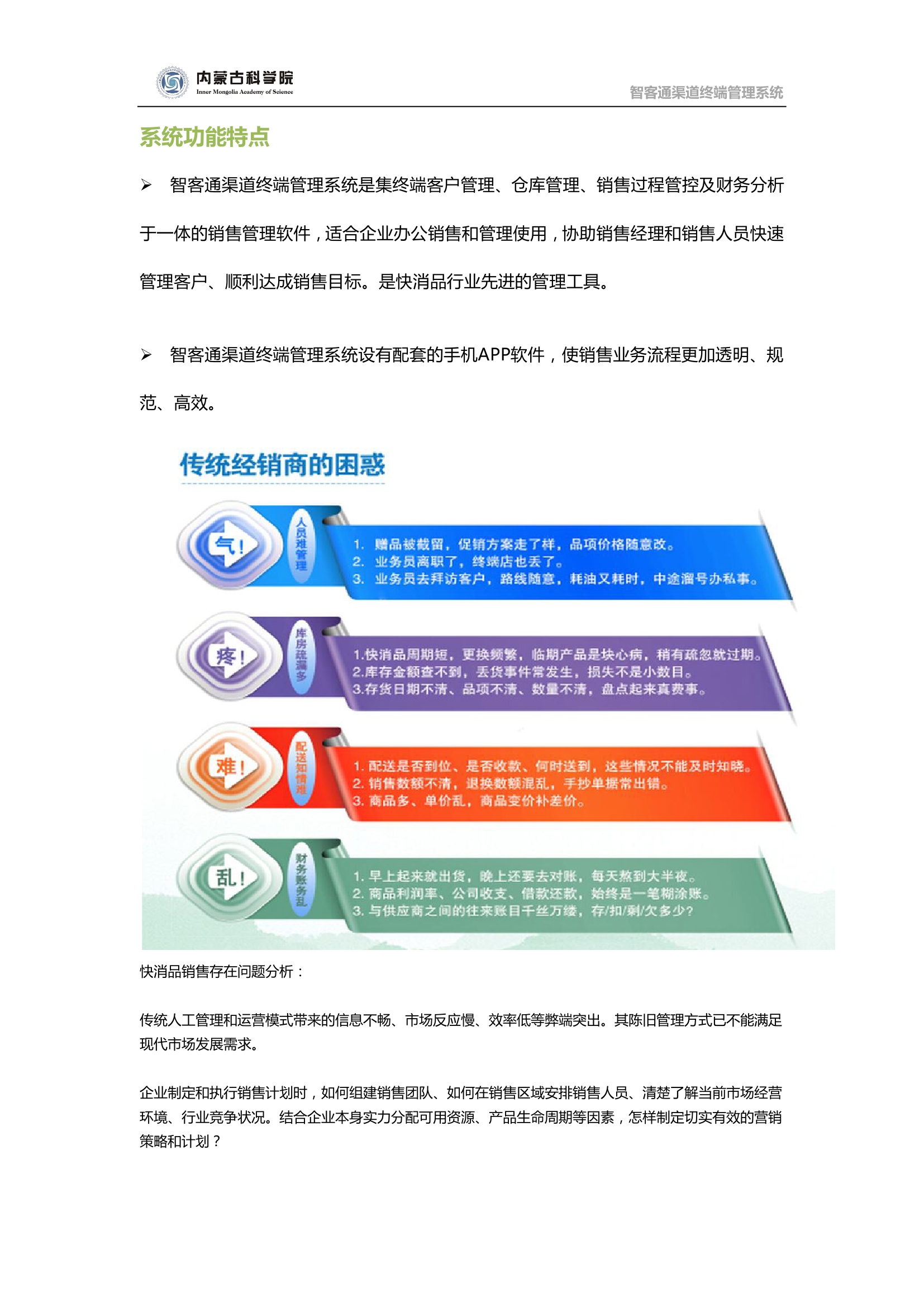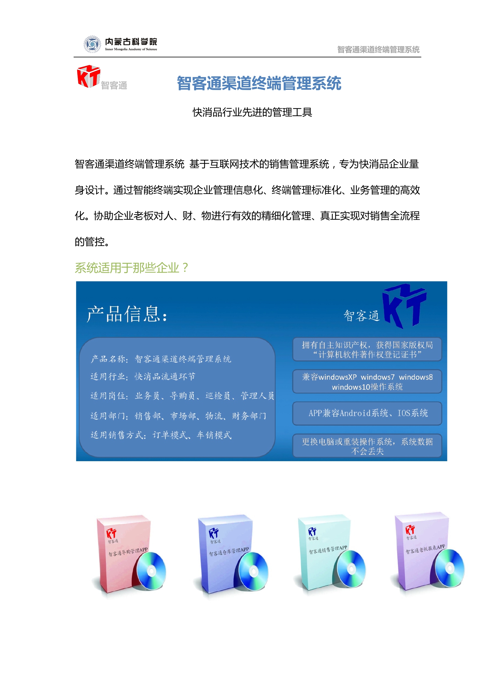 產品名稱:內蒙古科學院有限責任公司智客通渠道終端管理系統(tǒng)