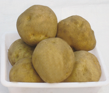 出苗后90—100天收獲,且適于炸片的中熟品種,塊莖圓形或短橢圓形,結(jié)薯集中,薯皮黃褐色,粗糙有網(wǎng)紋,薯肉白色,芽眼淺而少,該品種也適用于全粉加工,不耐干旱高溫,在干旱條件下,塊莖內(nèi)部容易產(chǎn)生褐色斑點,塊莖過大易產(chǎn)生空芯,影響其品質(zhì),應適當密植,畝株數(shù)應保持4500株—5000株,同時應注意防晚疫病。