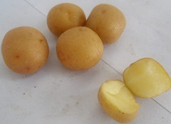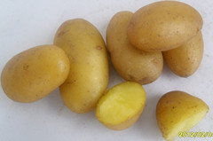FAVORITA(費烏瑞它)1981年由國家農(nóng)業(yè)部種子局從荷蘭引入,山東省農(nóng)業(yè)科學院蔬菜花卉所引入山東栽培,取名“魯引1號”,1989年天津市農(nóng)業(yè)科學院蔬菜花卉所引入,取名“津引8號”,又名“荷蘭薯”、“荷蘭七號”、“荷蘭15”,為我國主栽早熟品種之一,該品種出苗后60—70天即可收獲。 [特征特性]該品種早熟,株型直立,株高約60cm左右,莖桿粗壯,分枝少,葉片肥大,葉緣波狀,花淡紫色;結(jié)薯集中,薯塊膨大迅速,長橢圓形,芽眼淺,黃皮黃肉,表皮光滑,食味好,適合加工和出口創(chuàng)匯,在香港及東南亞各國極為暢銷;抗馬鈴薯Y病毒,對A病毒免疫;淀粉12.4%—14%,還原糖0.03%。植株易感晚疫病。塊莖感晚疫病和環(huán)腐病。輕感青枯病、退化快。產(chǎn)量高,畝產(chǎn)2000kg,高產(chǎn)可達3000kg以上。 [適宜范圍]該品種適宜性較廣,黑龍、遼寧、內(nèi)蒙古、河北、北京、山東、江蘇、廣東、廣西、貴州、四川等地均有種植,是適宜出口的品種。