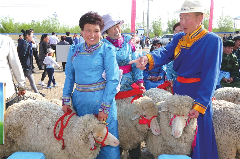烏審旗牧民趕著自家的優(yōu)質(zhì)細(xì)毛羊前來(lái)參加旗政府組織的“賽羊大會(huì)”。