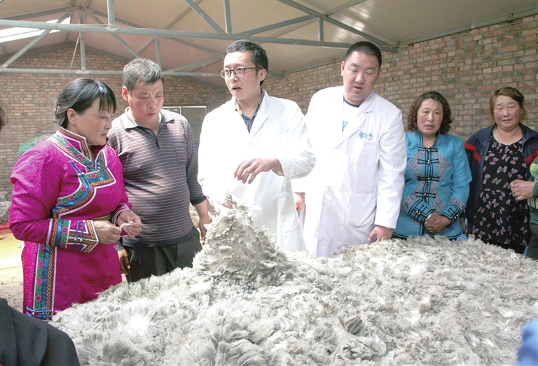 纖維檢驗(yàn)技術(shù)專家向牧民講授羊毛分選知識(shí)。