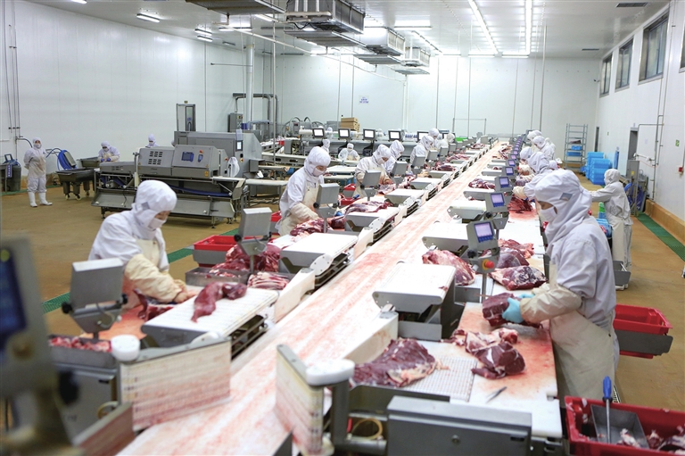 內(nèi)蒙古科爾沁牛業(yè)股份有限公司嚴(yán)格按照歐盟食品衛(wèi)生標(biāo)準(zhǔn)建立了牛肉加工生產(chǎn)流水線,形成了年屠宰 20萬(wàn)頭肉牛,生產(chǎn)冷鮮、冷凍肉4萬(wàn)噸的規(guī)模。該公司產(chǎn)業(yè)鏈模式建設(shè)有效帶動(dòng)了周邊農(nóng)牧民增產(chǎn)、增收。